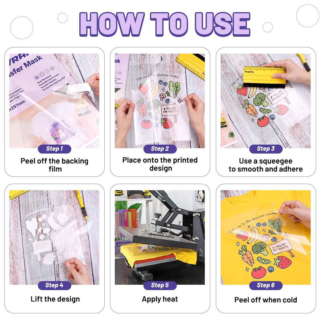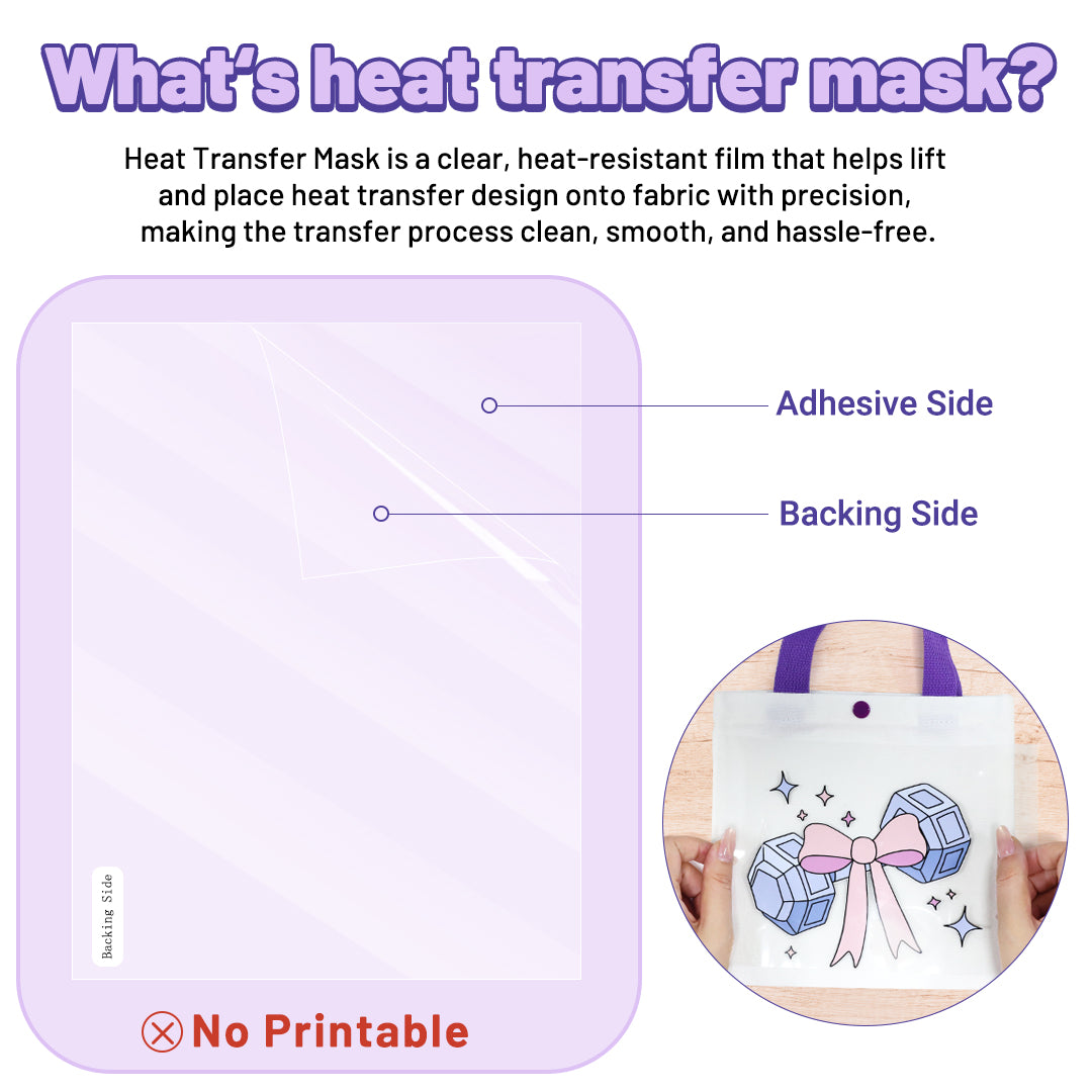 Heat transfer mask is used with our dark fabric heat transfer paper to get your designs ready for pressing. You can easily transfer your cut text and designs to the material that can be pressed or ironed on.