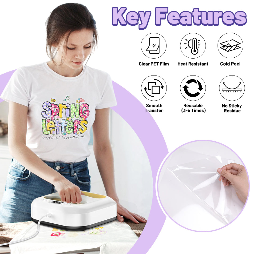 - Clear film, allowing you to accurately place the image on the garment.